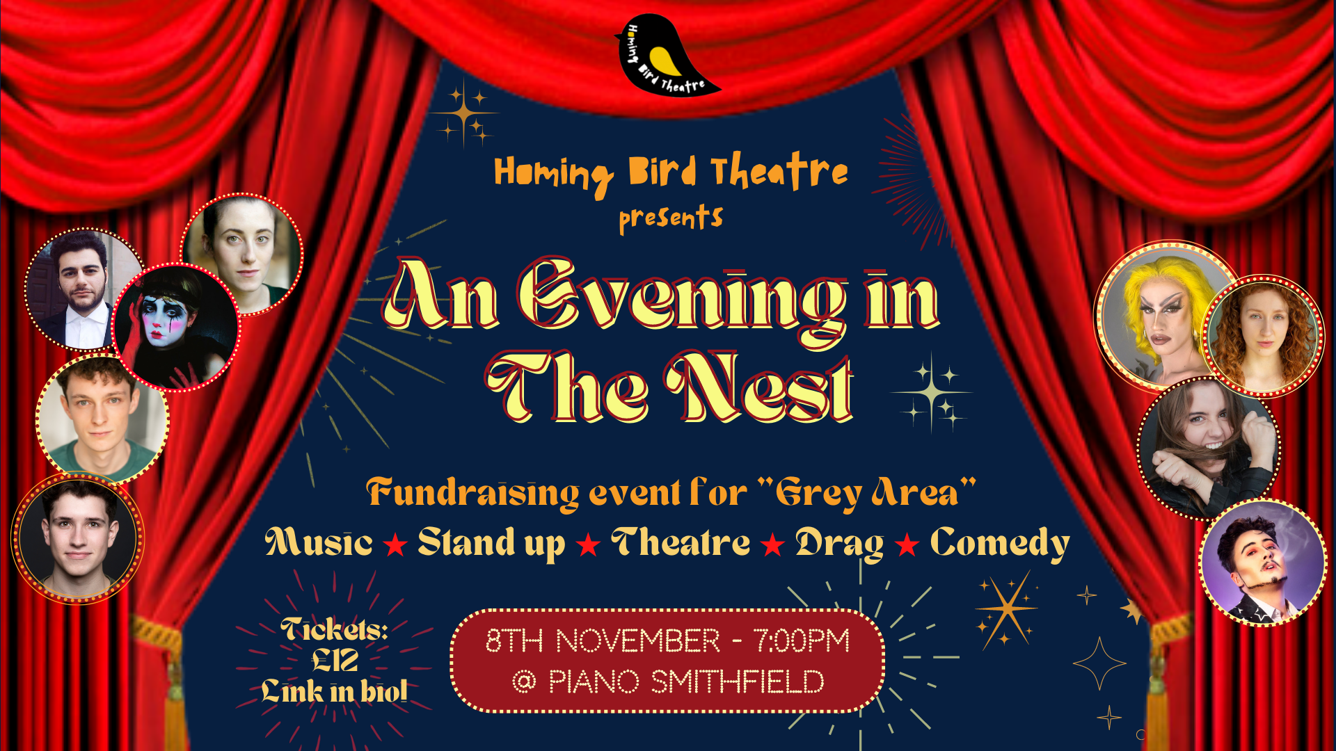 A dazzling and magical evening featuring live music, drag, theatre and stand-up comedy to raise funds to tour our acclaimed show "Grey Area" around the country. The play raises awareness of mental health in LGBTQIA+ relationships and presents a fiercely authentic portrayal of modern queer love, which we believe is now more important than ever to bring to audiences across the UK, and internationally.