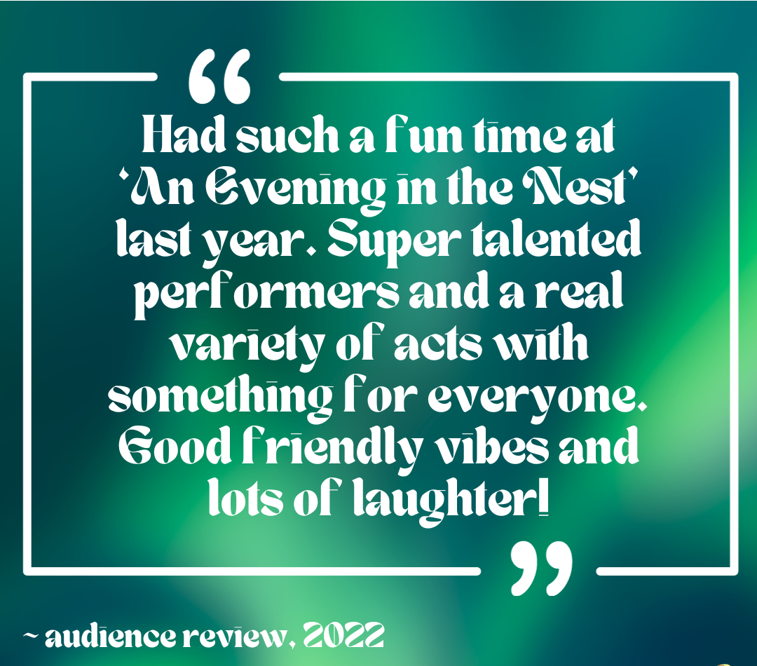 These fantastic events have hugely helped to fund Homing Bird's endeavours and has secured our longevity as a company. We don't intend to stop any time soon - keep updated with any future Evenings in the Nest on Our Events page.